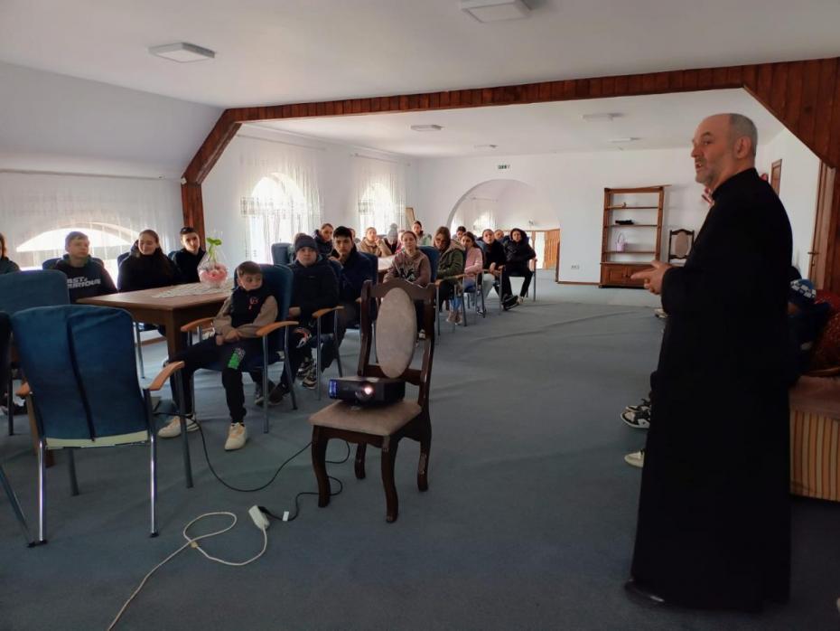 În cadrul catehezei „Chipul Cuviosului Părinte Paisie de la Sihăstria”, participanții au fost familiarizați cu viața și învățăturile Cuviosului Paisie, unul dintre cei mai mari duhovnici ai secolului XX. Discursul s-a concentrat asupra răbdării, rugăciunii neîncetate și înțelepciunii acestuia, trăsături esențiale care au marcat viața sa. Tinerii au fost încurajați să reflecteze asupra importanței unei vieți duhovnicești adevărate, inspirată de un model ca cel al Cuviosului Paisie. Participanți: 25 de tineri și elevi.